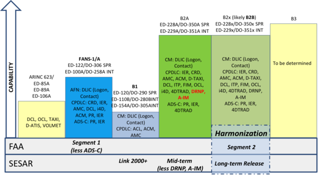 An important aspect of harmonization is not just the identification of and agreement to an end state, but also how to transition from current generation applications, networks and physical links to future ones. “Big bang” approaches do not tend to work well in aviation, especially when there are large numbers of equipped aircraft and ground systems that will need to change in short order. Changing equipage on aircraft is expensive and time consuming. Additionally, it is difficult to support multiple different technologies in different airspaces. Given these realities of dealing with existing and emerging technology, making maximum use of existing equipage is a viable way forward and has many benefits.